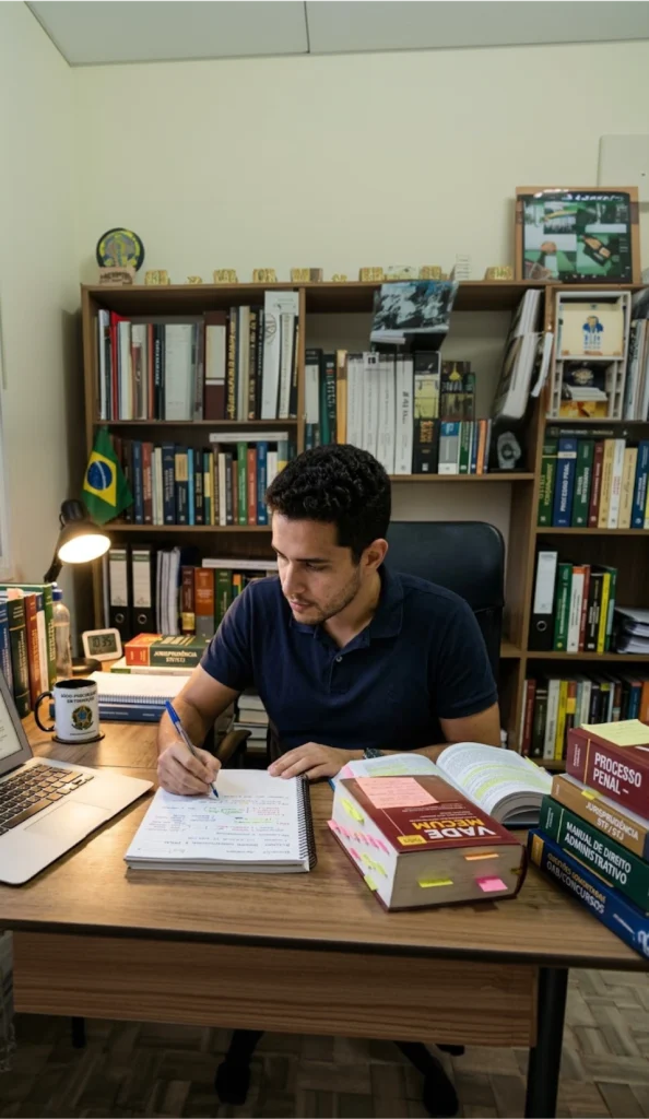 Em novembro decidi diminuir a rotina de trabalho e me dedicar aos estudos. Em maio descobri a aprovação no TRT 15 — fiquei em 9º lugar para analista e passei também para oficial de justiça no TRF 4. Eu vinha de um momento em que começava a estudar e parava, e quando peguei firme, vi resultado em tempo recorde. Agora sigo para a magistratura.